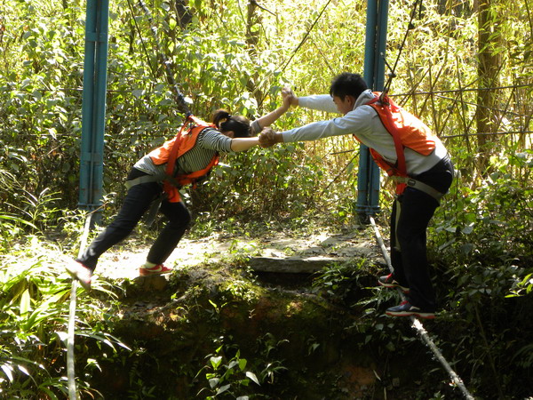 •  20121134日,昆明野鴨湖拓展訓練基地那里留下了我們成長的足跡。在各項訓練活動中,歌聲與微笑同在,汗水與淚水交織,演繹著敢于擋當、不言放棄,奮力拼搏、突破自我,彼此信任、緊密團結(jié)的真實故事,深深打動了每一個人。最特別的還是徒手翻越4.5高的團隊墻,因為那里不僅僅有大家奮力向上攀爬劃下的印跡,更多的攀爬過程中緊密配合的汗水及動人的淚水。大家真正體會到了“責任”的份量與團結(jié)的力量。我們永遠都是一個團隊!