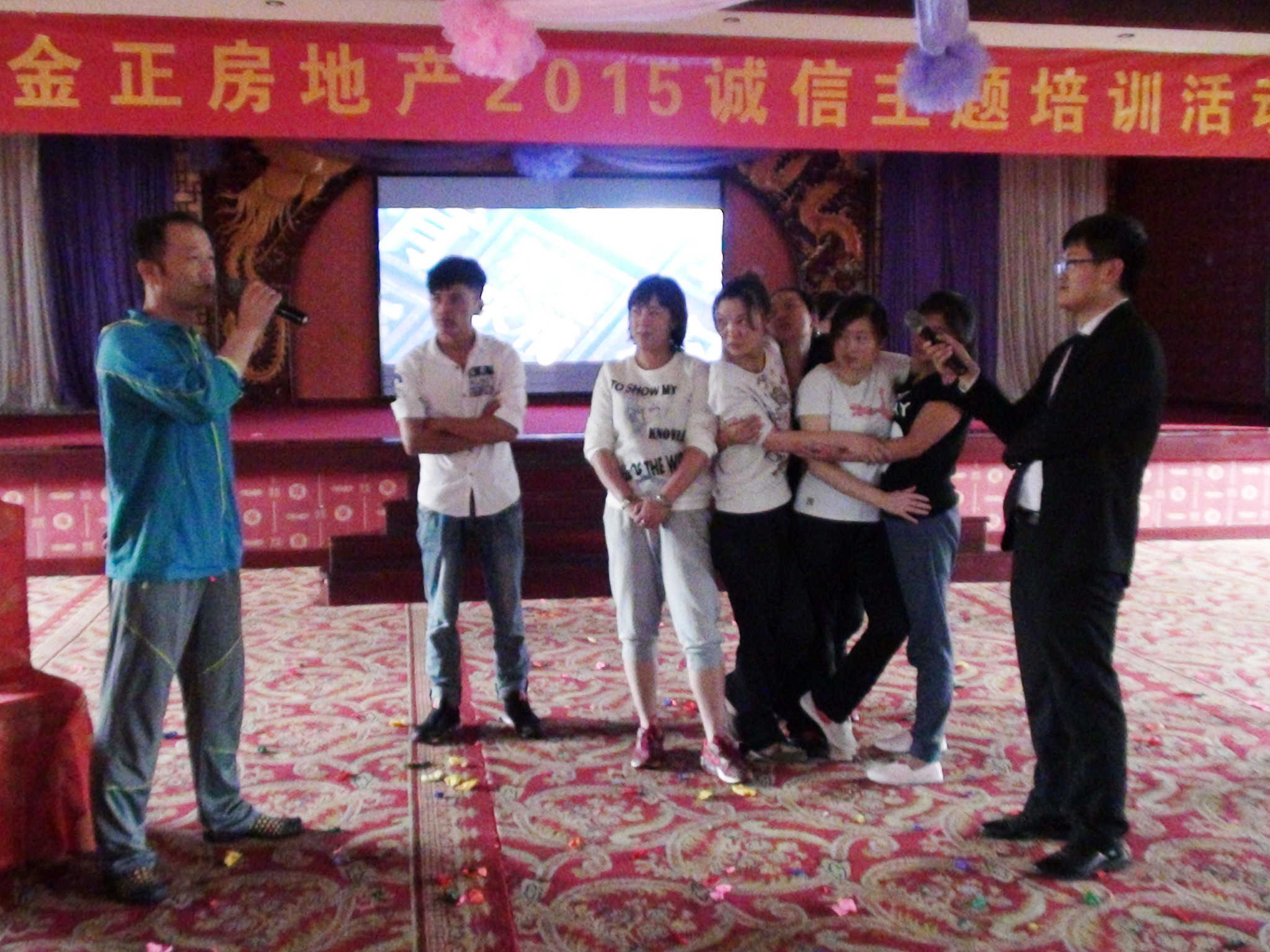 下午,在激烈的氣球保衛(wèi)戰(zhàn)游戲中,通過主題成語接龍和贊美別人相結(jié)合的游戲方式,檢驗(yàn)了員工主題知識(shí)的儲(chǔ)備和知識(shí)素養(yǎng),同時(shí)使所有人學(xué)會(huì)了用心去發(fā)現(xiàn)別人的長(zhǎng)處,做一個(gè)懂得欣賞他人的人。在地雷陣趣味游戲,讓大家明白了遵守活動(dòng)規(guī)則并信任隊(duì)員是取得勝利的重要因素,也是“勇于擔(dān)當(dāng)、信守承諾”的口號(hào)深入人心。趣味性最強(qiáng)的陣地保衛(wèi)戰(zhàn)游戲,各種各樣的比劃猜謎方式贏得了滿堂喝彩。