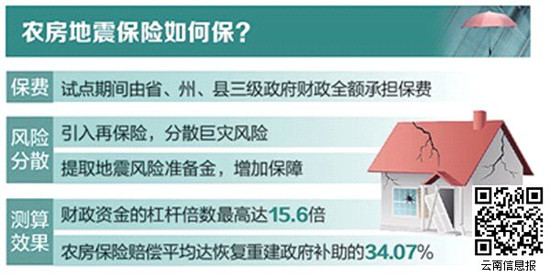試點(diǎn)方案從風(fēng)險(xiǎn)最高、損失最大的農(nóng)房地震災(zāi)害著手,既保障財(cái)產(chǎn)損失又保障人員傷害,將大理州境內(nèi)和周邊發(fā)生的5級(jí)及以上地震列為主要保險(xiǎn)責(zé)任,在3年的試點(diǎn)期限內(nèi),覆蓋大理州所轄的12個(gè)縣(市)的82.43萬農(nóng)戶和356.92萬城鄉(xiāng)居民。根據(jù)地震震級(jí)的不同,在保險(xiǎn)保障年度內(nèi),農(nóng)村房屋保險(xiǎn)可獲累計(jì)最高保險(xiǎn)賠償金42000萬元,居民人身保險(xiǎn)可獲累計(jì)最高保險(xiǎn)賠償金8000萬元。